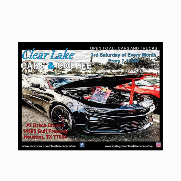 Clear Lake Cars & Coffee is a ministry outreach group of Grace Church, Houston, Texas. All cars, trucks and rides are invited to attend. Please respect the property, NO BURNOUTS.